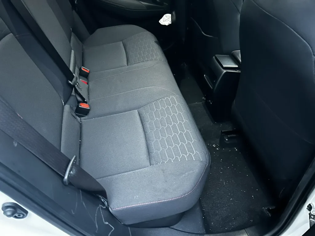 清掃後は、シート表面のムラや汚れの跡が目立たない状態となり、座面全体が均一に整っています。フロアやドア周辺についても付着物が確認できない状態となり、車内全体として違和感のない状態へ整っています。