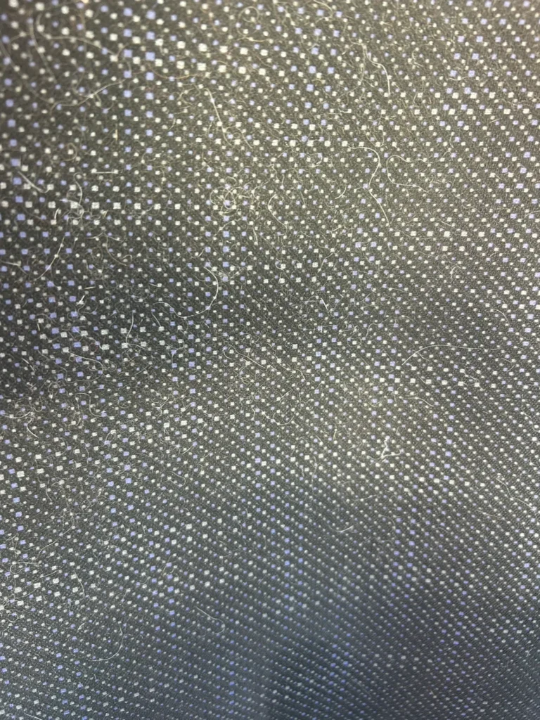 清掃後のシートは、表面に絡みついていた毛が取り除かれ、生地の模様がはっきり見える状態になりました。黒い生地の上に目立っていた白い毛は確認できない状態です。
