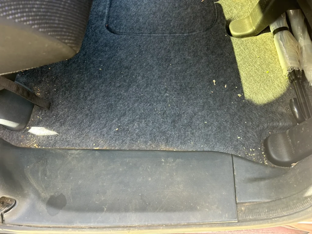トランクスペースは床面の繊維が整い、内部に残っていたゴミがなくなりました。車内全体がすっきりとした状態です。