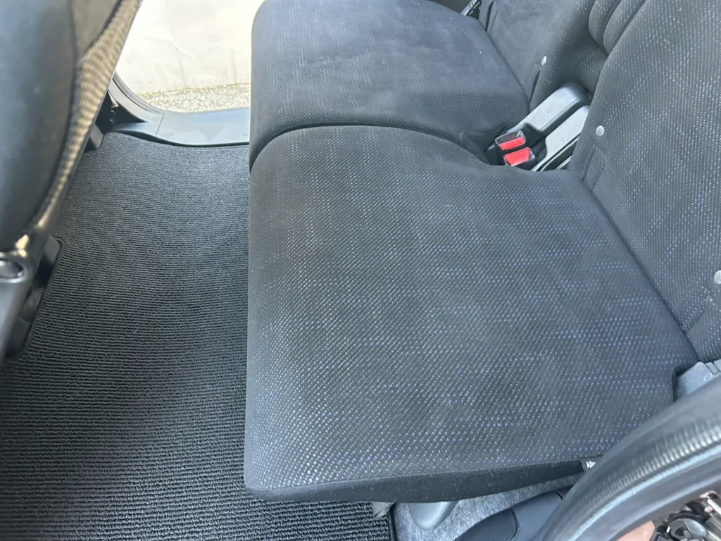 清掃後のシートは、表面に付着していた犬の毛が取り除かれ、生地の色味が均一に見える状態になりました。前席・後部座席ともに、毛が絡んでいた部分は確認できません。