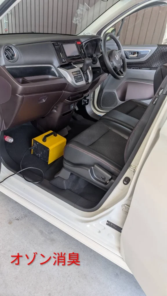 内部洗浄後、オゾン発生器を設置し、車内全体の消臭を行いました。