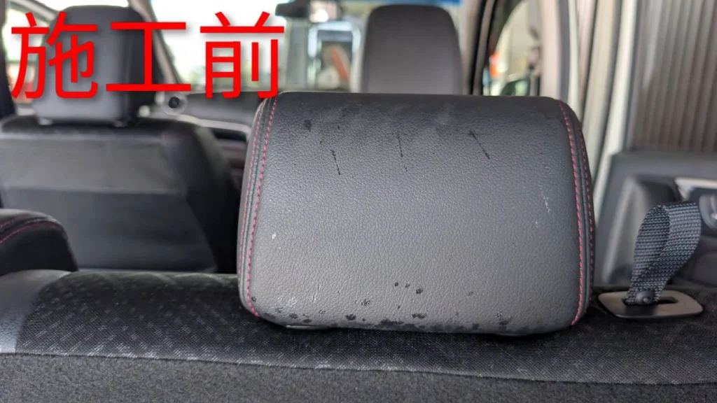 ヘッドレストの斑点状の汚れも落ち着き、質感が均一に近づいています。