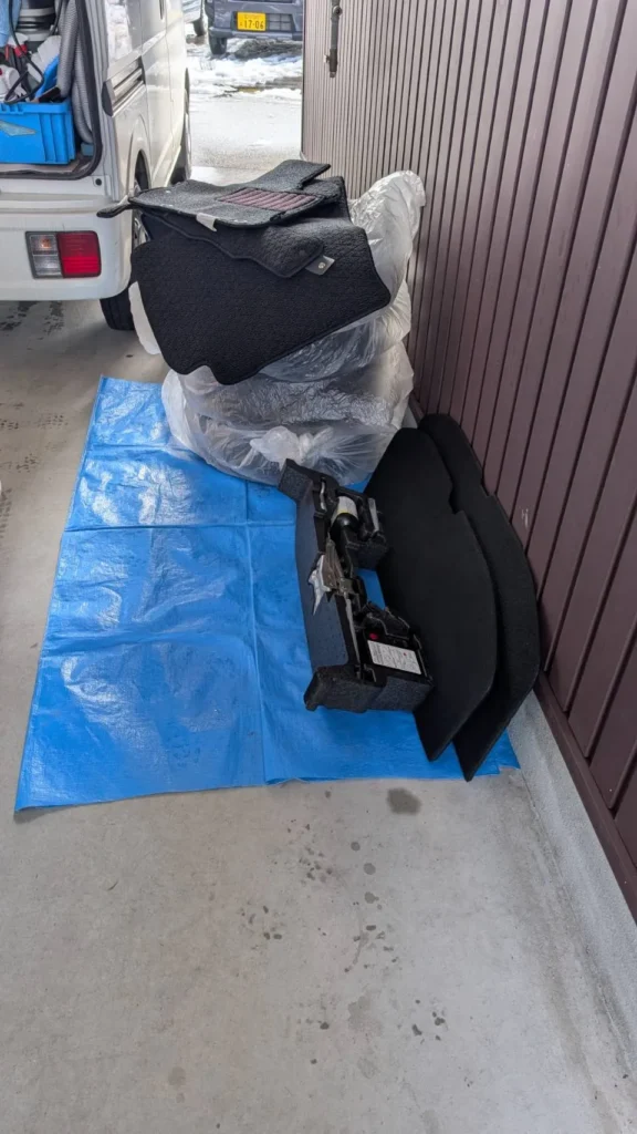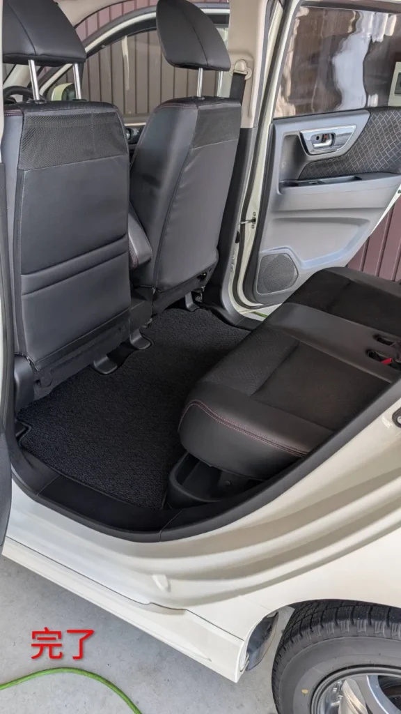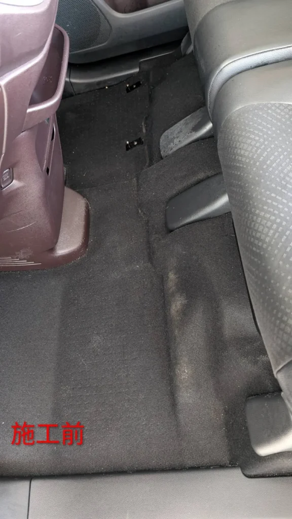 フロアマットを取り外し、カーペットも含めて吸引・洗浄を実施しました。