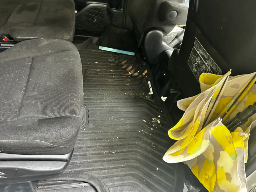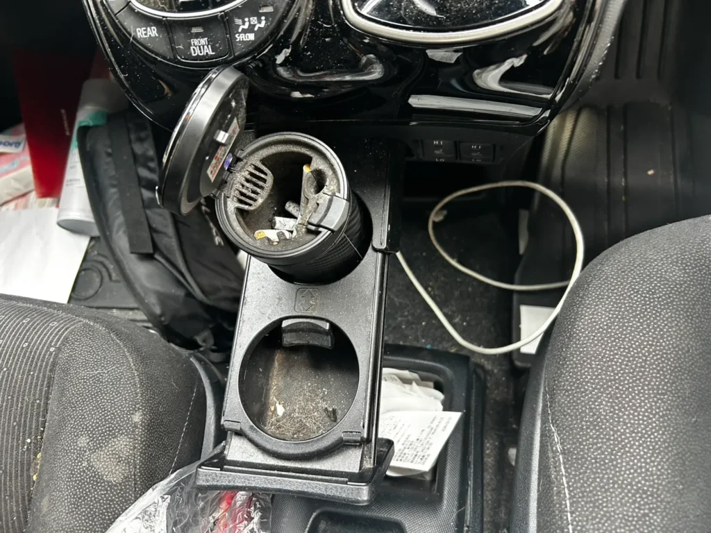 作業後は、車内全体の汚れを整理し、タバコ臭の軽減を目的とした状態へ整えています。
