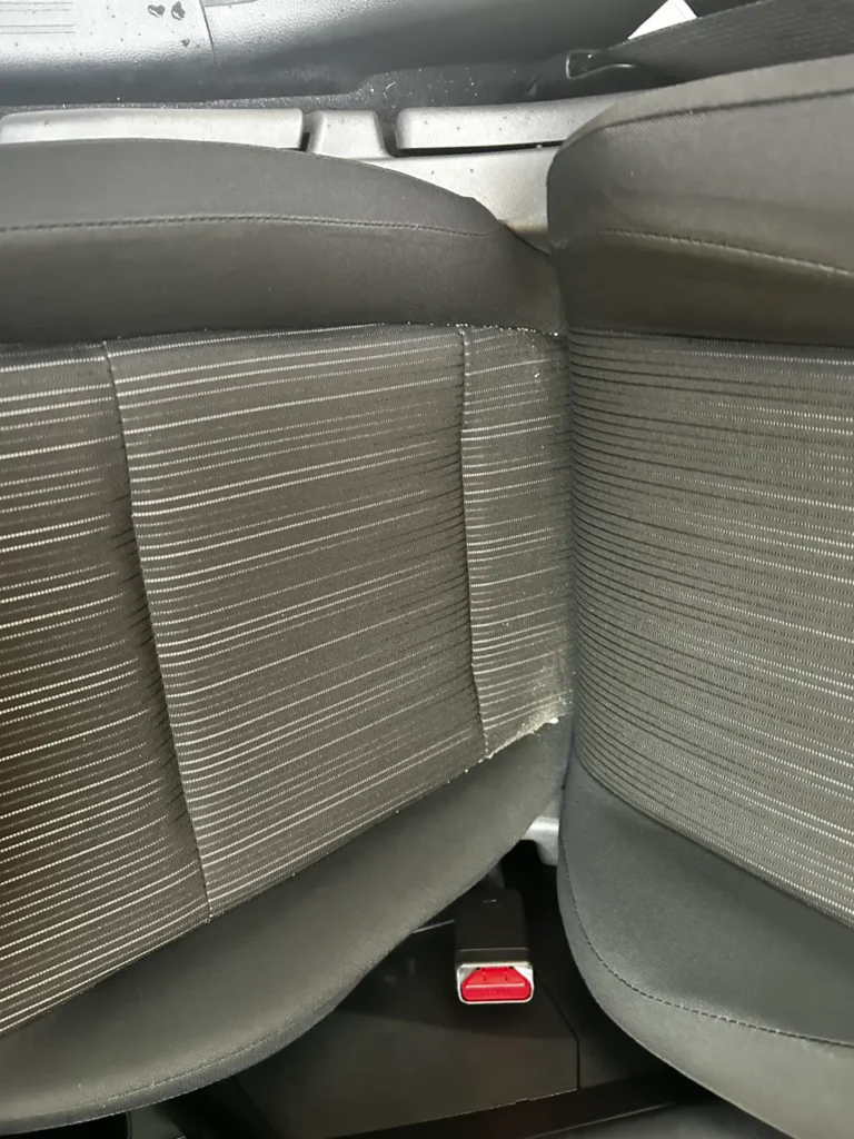 今回の車両は、嘔吐による汚れと日常使用の蓄積が重なっている状態でした。