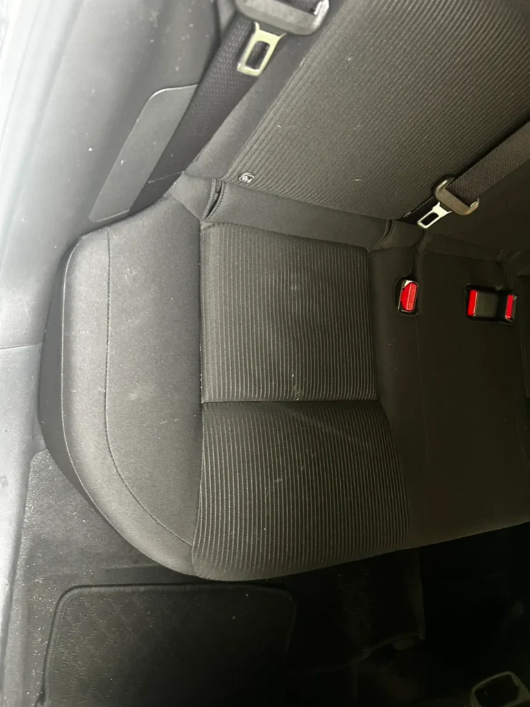 後部座席にも細かな汚れが見られ、座面全体にわずかな付着や使用感が残っている状態でした。