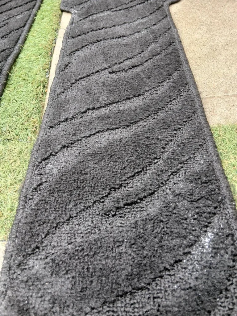 まずマットは車外に取り出し、専用洗剤を使用して繊維内部の油分を分解する洗浄を実施しました。