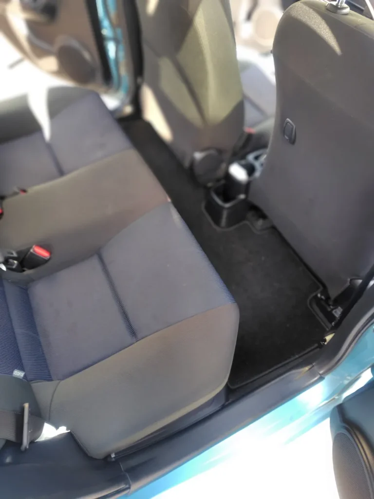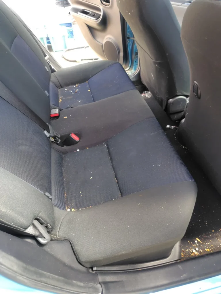 作業後は、シート上やフロアに散乱していたゴミが取り除かれ、車内全体の見通しが良くなりました。シートの表面も均一に整い、元の状態に近い見た目に戻っています。