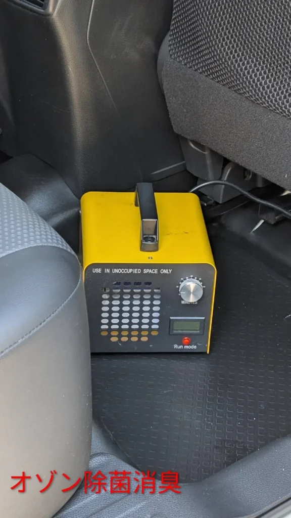 今回の作業では、車内全体の清掃に加え、オゾン消臭を組み合わせた対応となりました。