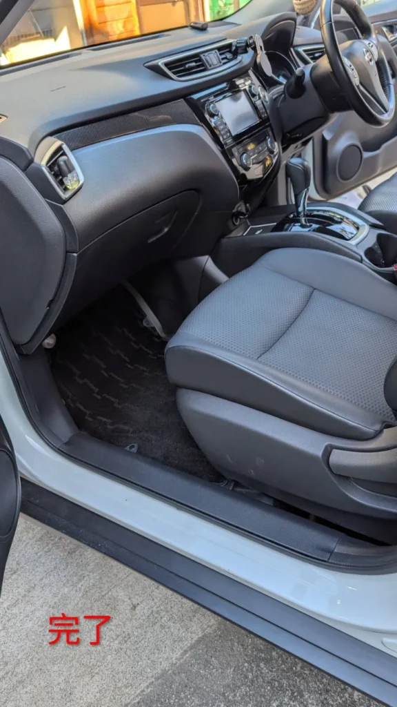 すべての作業が完了した後、車内を最終確認したところ、嘔吐による汚れや臭いは感じられない状態まで回復しました。